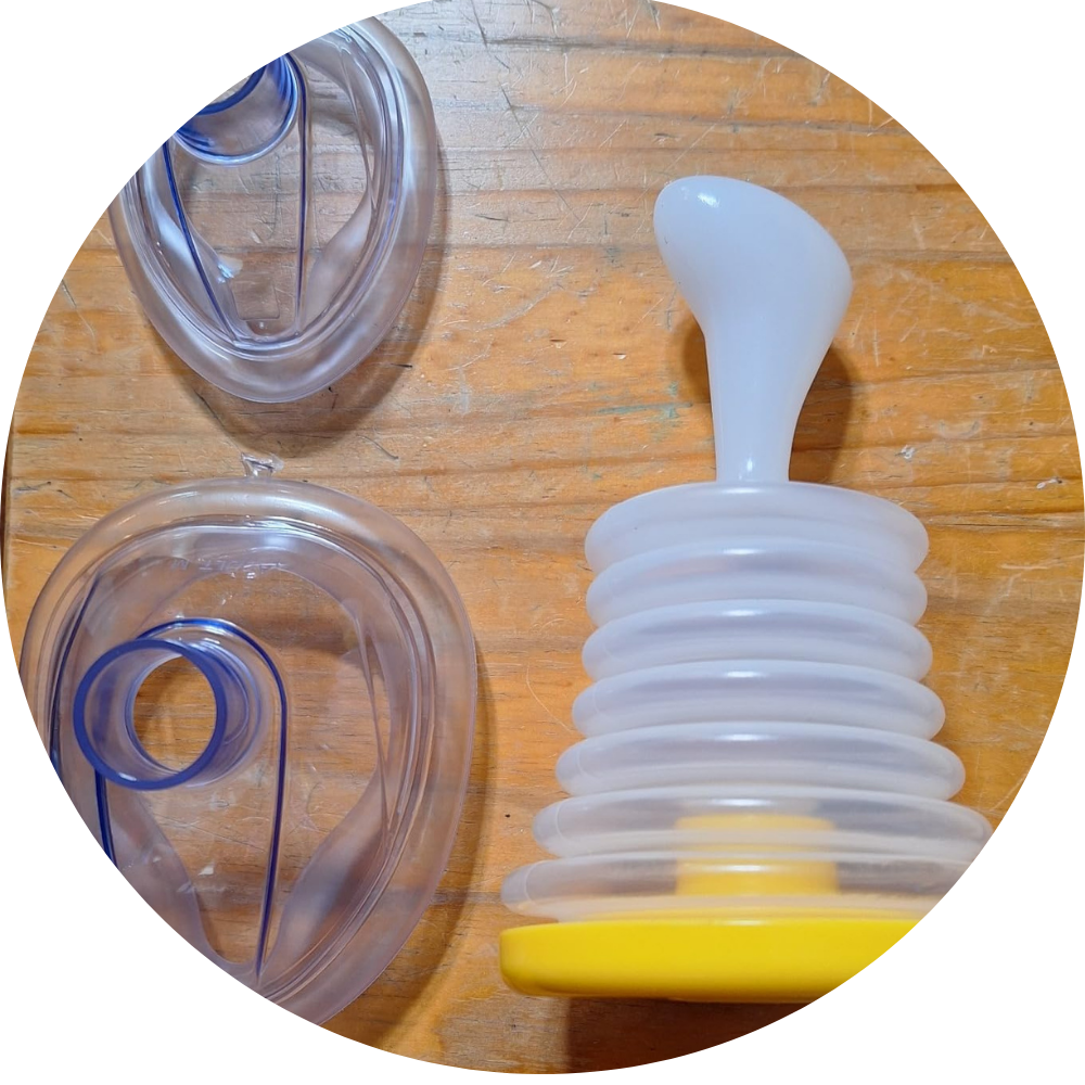 1-ضع الجهاز على فم وأنف الشخص المختنق.
